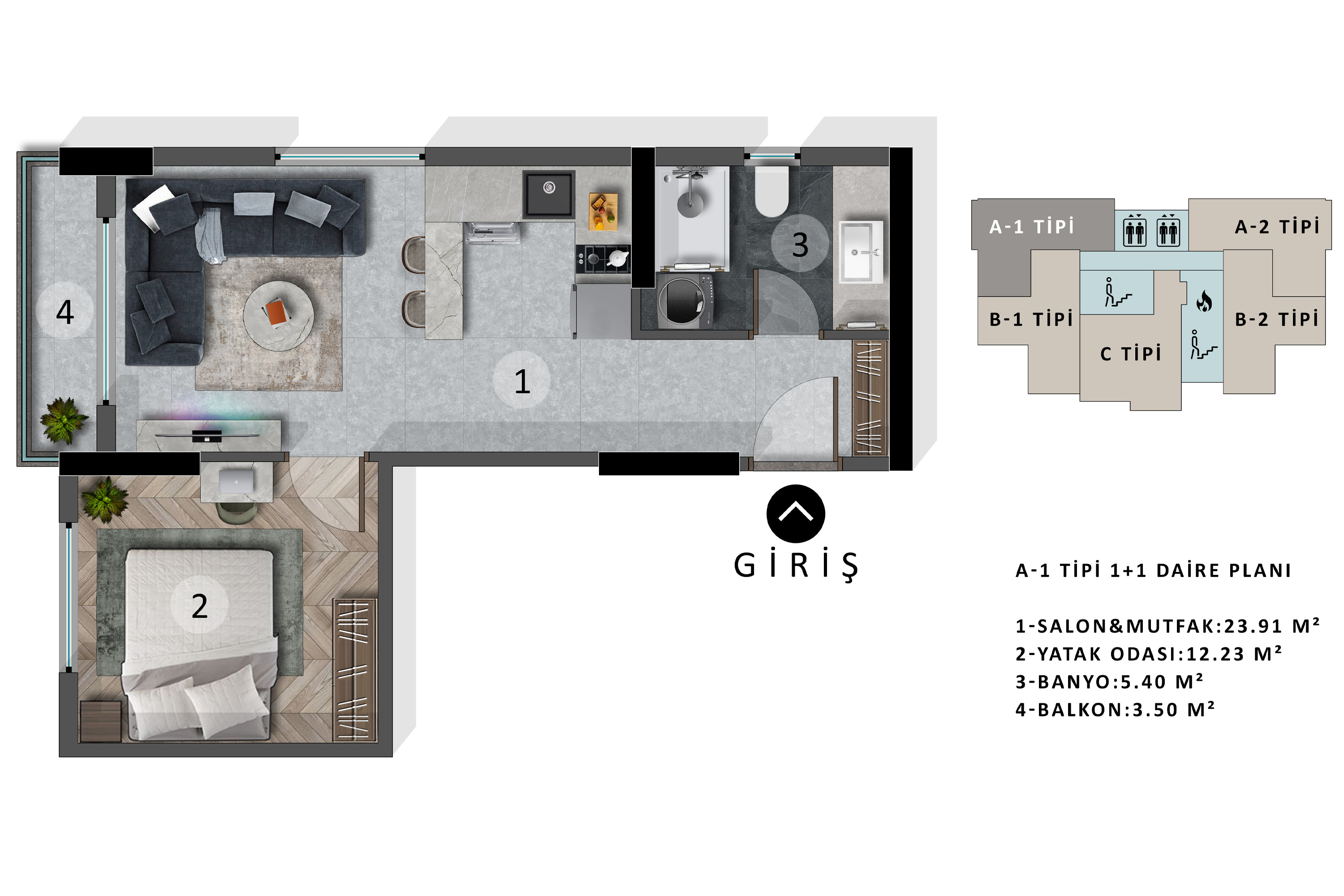 Sadece 59 özel 1+1 daire ile ayrıcalıklı bir yaşam fırsatı sizi bekliyor.